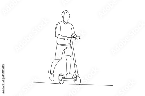 One continuous line drawing of People walking, playing, riding bicycle at city park. Activities outdoors concept. Doodle vector illustration in simple linear style.