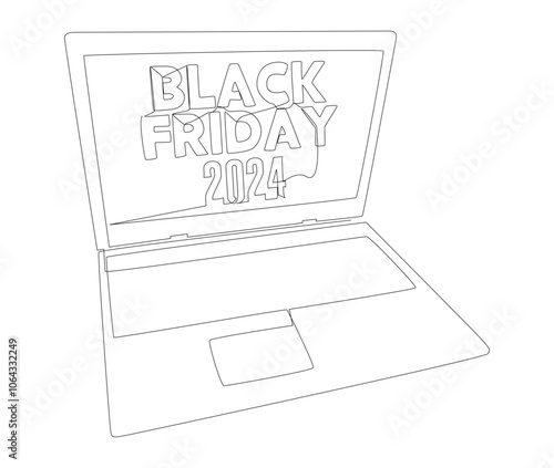 One continuous line of Laptop with Black Friday 2024 text. Thin Line Illustration vector concept. Contour Drawing Creative ideas.