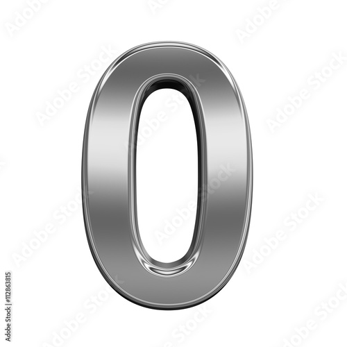 One digit from titanium alphabet set, isolated on white. 3D illustration.