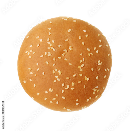 One fresh burger bun isolated on white