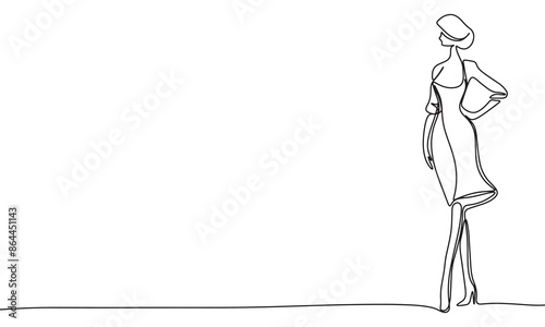 One line continuous woman fashion silhouette. Hand drawn vector art.