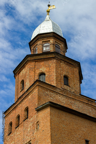 One of the towers on the fortress wall. Veliky Novgorod Kremlin.