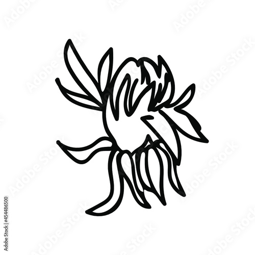 One Vector Botanical Illustration Dandelion with black line on white background.Floral,Summer hand drawn doodle style picture.Designs for packaging,social media,web,cards, posters,invitations.