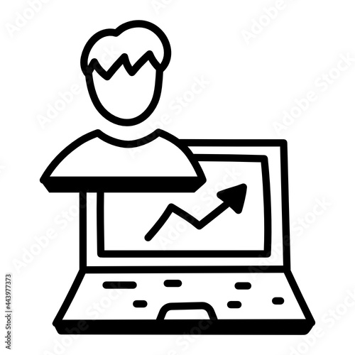 icon, vector, doodle, drawing, vignetting, linear, online, presentation, datum, laptop, person, avatar, graph