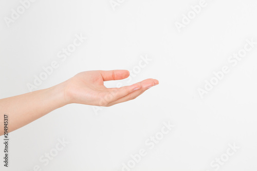 Open a black woman's hand, palm up isolated on white background.Front view. Mock up. Copy space. Template. Blank.