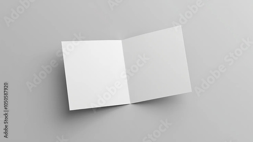 Open and closed blank brochures on grey background, top view. Mock up for design, 16:9 widescreen, 300 dpi, with free space for text