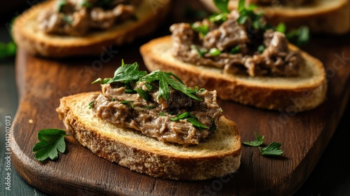 Open faced sandwiches topped with homemade chicken liver pate