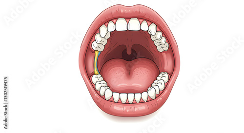illustration, graphic, design, clip art, isolated, cartoon, medicals, health, oral, hygiene, clean, mouth, teeth, gum, food, stuck, blue, yellow, open, inside, tongue, dental, care, health care, medicine, education, human, anatomy, dentist, white, pink, cheek, lip, drawing, clip art, educational, learning, science, chart, diagram, visual, presentation, article, booklet, explanation, understanding