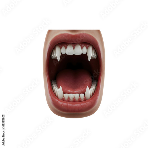 Open Mouth with Vampire Fangs for Scary Halloween Design and Horror Art Concepts