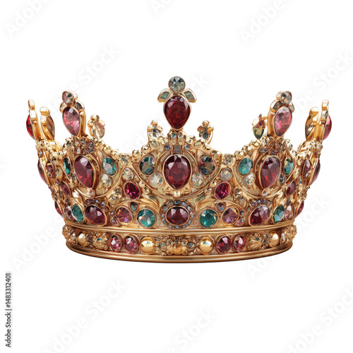 Opulent Golden Crown with Gems , isolated on white background png