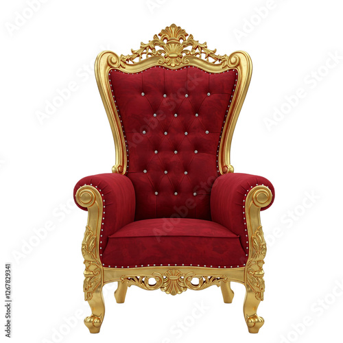 Opulent red and gold throne chair, exuding luxury and elegance, isolated on a pristine white background—perfect for royal, regal, or high-end design projects."