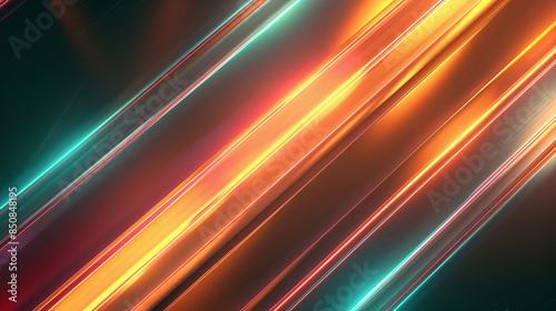 Orange and Turquoise glowing abstract geometric lines. PowerPoint and Business background.