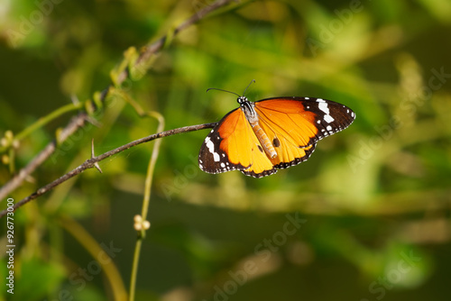 Orange butterfly Danaus chrysippus, also Plain tiger or African queen or African monarch, in Asia, Australia and Africa, consume plants in the genus Asclepias, more commonly called milkweed