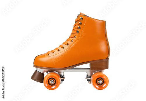 skate, roller, orange, boot, leather, wheel, side, profile, lace, vintage, retro, classic, footwear, sport, recreation, equipment, hobby, athletic, colourful, bright, transportation, synthetic, active, lifestyle, fashion, movement, rolling, indoor, fun, leisure, fitness, exercise, sk8, youth, childhood