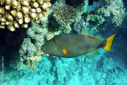 Orange-striped triggerfish (Balistapus undulatus) , coral fish in the coral reef