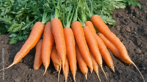 Organic carrots freshly pulled from the soil, showcasing vibrant orange hues and lush green tops, highlighting the beauty of sustainable gardening practices.