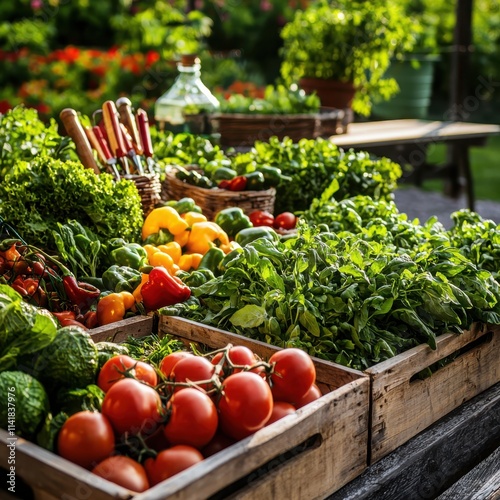organic, garden, harvest, produce, setting, living, sustainable, greenery, sunshine, community, vibrant, seasonal, earth, climate, growth, scenery, ecosystem, sunlight, market, dirtied, farmer, foliage, vegetable, bounty, planting, crop, nourishment, abundance, herb, rural, wholesome, kitchen, watering, pepper, cultivation, freshness, biodiversity, tomatoes, healthy, flower, edible, environmentally friendly, nature, bright, environment, food, landscape, agriculture