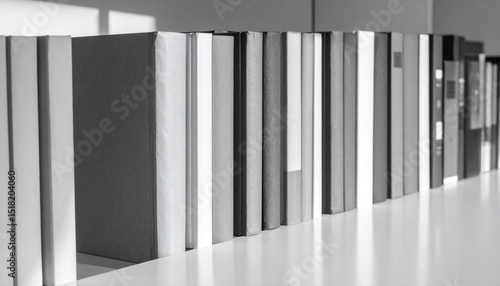 book, row, collection, library, stacked, shelf, black, and, white, greyscale, arrangement, organised, spine, cover, hardcover, paperback, variety, literature, education, cognition, reading, bookshop, display, horizontal, light, shadow, background, interior, design, still, life, object, closeup, photo, monochrome