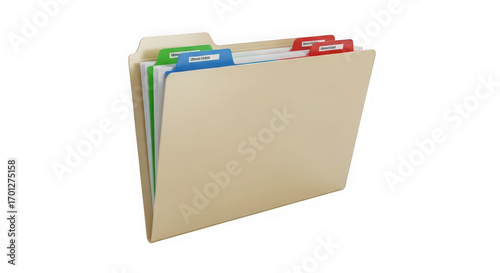 Organized office document folder setup with multiple color-coded tabs for efficient filing and record keeping transparent background