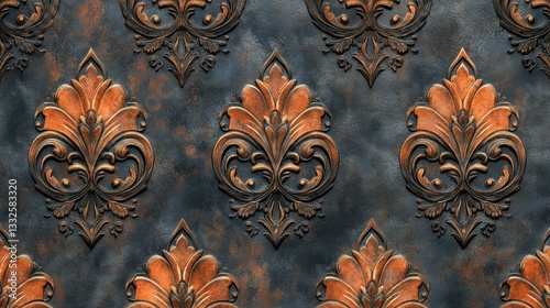 pattern, wallpaper, design, decorative, embossed, copper, floral, ornate, relief, vintage, dark, background, metal, texture, three-dimensional, luxury, classic, elegant, art, decor, home, wall, room, interior, style, motif, symmetry, geometric, bronze, gold, brown, grey, patterned, repeating, modern, rustic, industrial, artwork, ornamental, detail, artistic