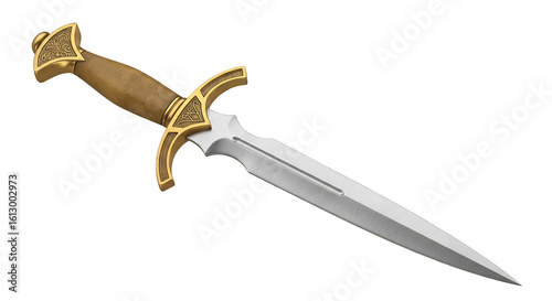 dagger, knife, sword, weapon, fantasy, mediaeval, ancient, historical, blade, sharp, steel, metal, hilt, handle, ornate, decorative, gold, gold, engraved, intricate, detailed, craftsmanship, luxury, elegant, antique, collectable, prop, costume, cosplay, game, adventure, hero, warrior, knight, assassin, spy, combat, battle, defense, attack, power, symbol, icon, isolated, cut-out, studio shot