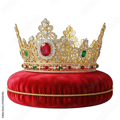 crown, gold, gold, gem, gemstone, icon, 2025, 2026, transparent, isolated, on, white, background, full, hd, download, ruby, emerald, red, green, velvet, cushion, royals, regal, monarch, king, queen, royalty, luxury, wealth, power, treasure, ornate, intricate, detailed, precious, artifact, symbol, status, heirloom, antique, vintage, opulent, majestic, ceremonial, display