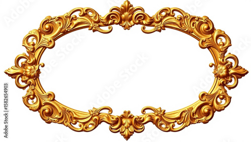 Ornate golden oval frame with intricate baroque detailing, isolated on white.