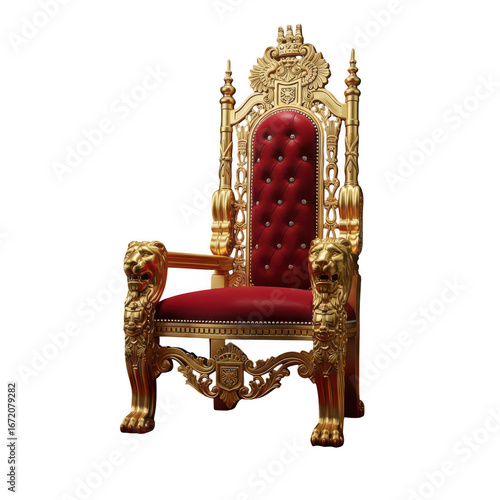 throne, royals, king, queen, monarch, regal, ornate, gold, gold, velvet, red, luxury, opulence, majestic, ornamented, furniture, chair, seat, symbol, power, authority, fantasy, mediaeval, castle, palace, ceremonial, iconic, isolated, design