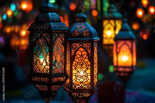 lantern, metalwork, intricate, ornate, glow, light, illumination, warm, ambience, festive, night, bokeh, colourful, background, dark, shadow, pattern, design, craftsmanship, hanging, detail, texture, atmosphere, elegant, romantic, mystical, traditional, culture, celebration, holiday