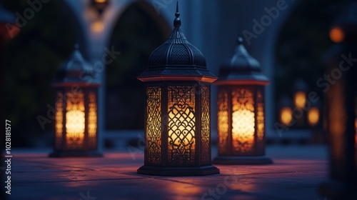 lantern, candle, light, glow, metal, ornamental, patterned, decorative, arab, islamic, ramadan, eid, muslim, religious, feast, celebration, festival, culture, tradition, spirituality, faith, hope, peace, warm, night, dark, shadow, gold, bronze, brass, metalwork, art, craft, design, architecture, interior, room, building, stone, floor, surface, sharpened, close, up, detail