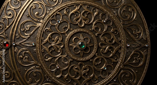 metalwork, emboss, floral, design, detail, texture, pattern, surface, closeup, stone, circle, round, decoration, vintage, bronze, metallic, carving, engraving, inlay, art, craft, background, decorative, element, geometric, sculpture, artistic, antique, artwork, metal, material, colours, red, green, style, ancient, embellishment, ornament, renaissance, relief, craftsmanship, scroll, spiral, curl, filigree, etched, gem, ornate