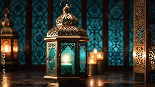 Ornate Moroccan Lanterns with turquoise, gold, and candlelight V2