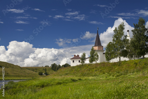orthodox, monastery, church, river, religion, building, architecture, history, landmark, cross, christianity, dome, past, culture, summer, blue, old, russian, water, cathedral, gold, traditional