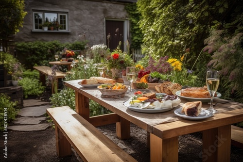 outdoor bistro serving up farm-to-table fare in tranquil garden setting, created with generative ai