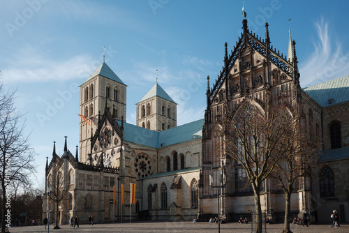 Outdoor exterior sunny view of St.-Paulus-Dom, Domplatz Münster and Münster Cathedral in Münster Germany.