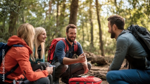 training, group, first, aid, safety, health, workplace, education, teamwork, forest, environment, backpack, nature, discussion, preparation, guidance, information, skill, exercise, leadership, adventure, communication, support, equipment, emergency, cognition, practical, awareness, session, practice, interaction, hiking, people, activity, learning, presentation, sharing, coaching, instructor, participant, sport, engagement, fun