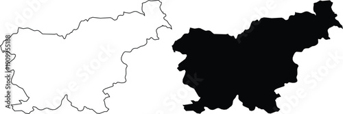 Outline and Solid Map of Slovenia Country Vector Keywords: Slovenia, map, outline, solid