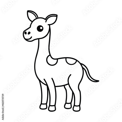 outline baby giraffe cartoon on white background
