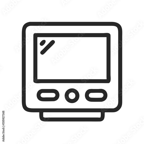 monitor, screen, display, retro, vintage, computer, technology, old, television, buttons, interface, electronic, device, cathode, ray, tube, crt, electronic, equipment, object, vector, isolated, graphic, flat, design, icon, symbol, outline, line, art, illustration, monochrome, black, white, classic, digital, media, communication, datum, signal, pixel