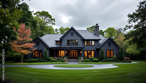 Overcast Day at Modern Home with Circular Driveway