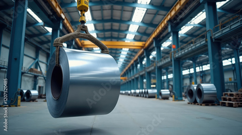 industrial, factory, warehouse, crane, metal, manufacturing, industry, steel, metalworking, production, machinery, engineering, storage, logistic, transportation, lifting, moving, automated, technology, modern, interior, building, large, roomy, metal industry, steel mill, aluminium, raw material, coil, sheet metal, metallurgy, factory, industrial building, distribution, shipping, cargo