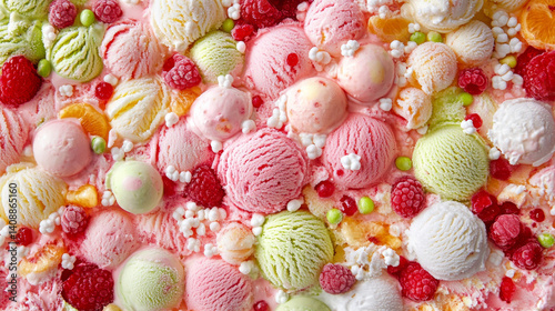 Overhead perspective of a diverse mix of ice cream and fruit sorbets