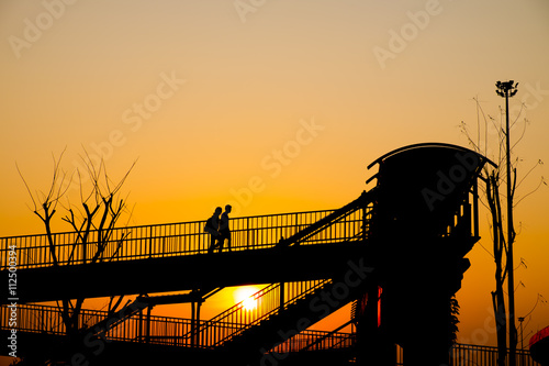 Overpass walk way silhouette.