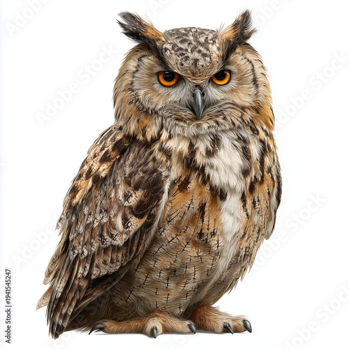 Owl sitting on invisible perch 4 – made with generative AI - white background - PNG