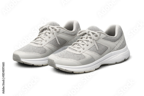 Pair of gray walking shoes, isolated on a transparent background image