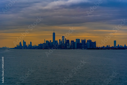 Paisaje con vistas al río Hutson, New York city, atardecer, nubes