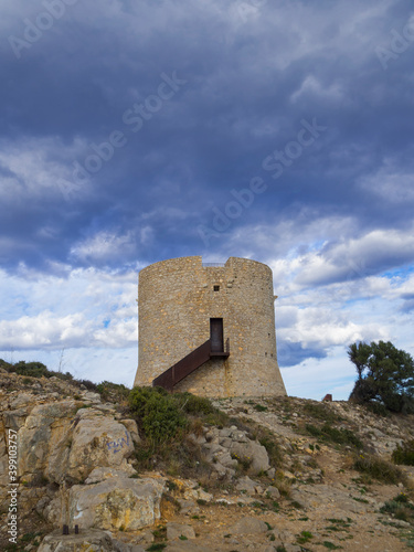 Paisaje de la torre de Cala Montgó, en l'Estartit, Costa Brava, Girona, Febrero de 2018