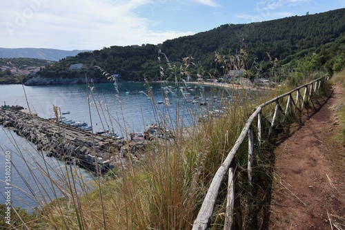 port, quay, reef, breakwater, lighthouse, boat, motorboat, waking, excursion, bay, creek, view, path, trekking, hike, sea, mediterranean, tyrrhenian, surface, wave, coast, coast, blue, blue, hiking, panoramic, environment, nature, naturalistic, touristy, cape, park, sunny, tower, blockhouse, cilento, campania, italy