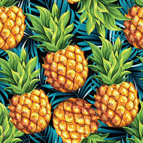 Palm. Seamless pattern with branches and leaves of tropical tree plant for print, web design, textile. Vector image.