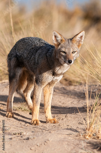 Pampas Grey fox in Pampas grass environment, La Pampa province, Patagonia, Argentina.